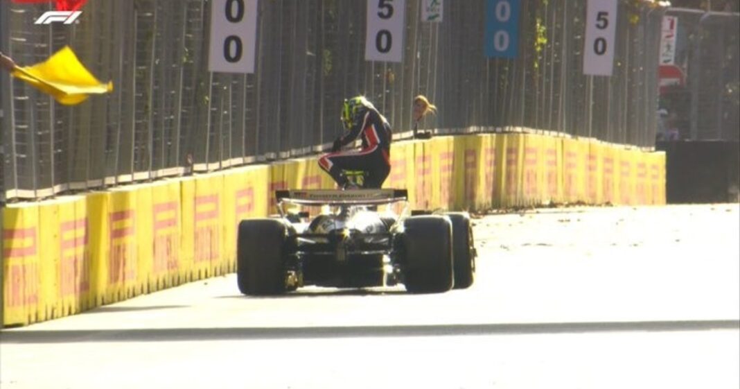 En la Q2, de arranque, sacaron la bandera amarilla porque Isack Hadjar siguió de largo, aunque sin golpes. No tuvo la misma suerte Oliver Bearman (Haas), que a los 3′ de la sesión, se quedó parado luego de darle a la pared con la rueda trasera derecha: no fue fuerte pero si lo suficiente para dejarlo KO.