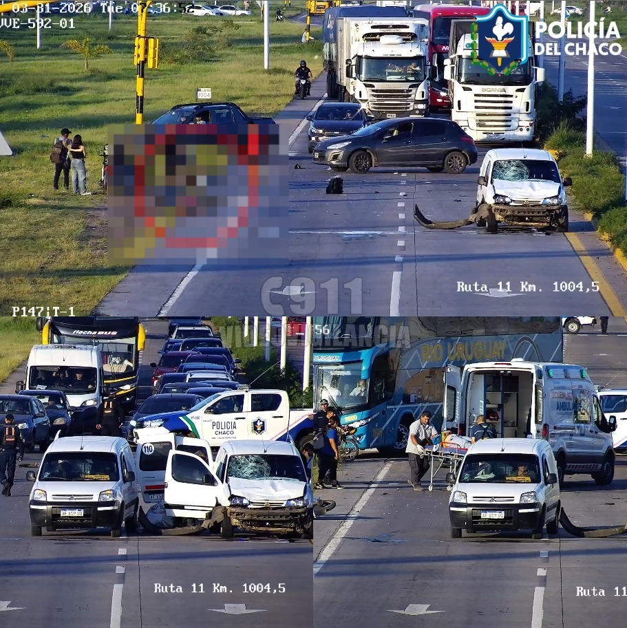 Una mujer de 48 años fue trasladada al Hospital Perrando tras una colisión entre una motocicleta y una camioneta en la Ruta Nacional 11. Permanece en observación con traumatismos.