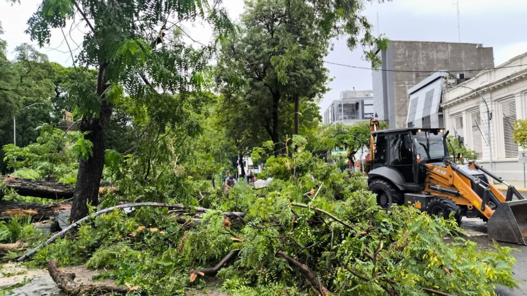Desde la madrugada del domingo, las lluvias, muy intensas y persistentes, afectaron a la ciudad, provocando caídas de árboles, postes de alumbrado y telefonía, además de anegamientos temporarios en distintos sectores, como consecuencia del alto volumen de agua caída en un corto período de tiempo.