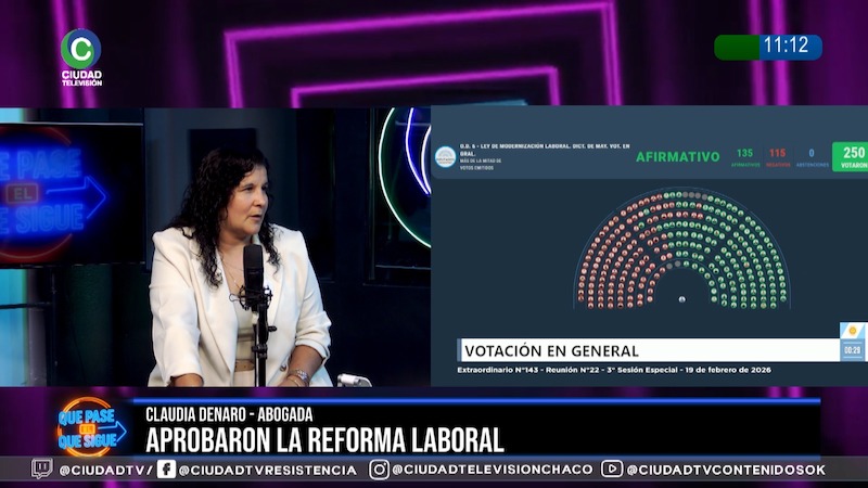 La abogada Claudia Denaro analizó en CIUDAD TV la aprobación de la reforma laboral en Diputados y sostuvo que la iniciativa no moderniza el sistema, sino que “precariza el empleo” y facilita despidos. Alertó sobre cambios en indemnizaciones, negociaciones salariales, período de prueba y el impacto en el sistema previsional.