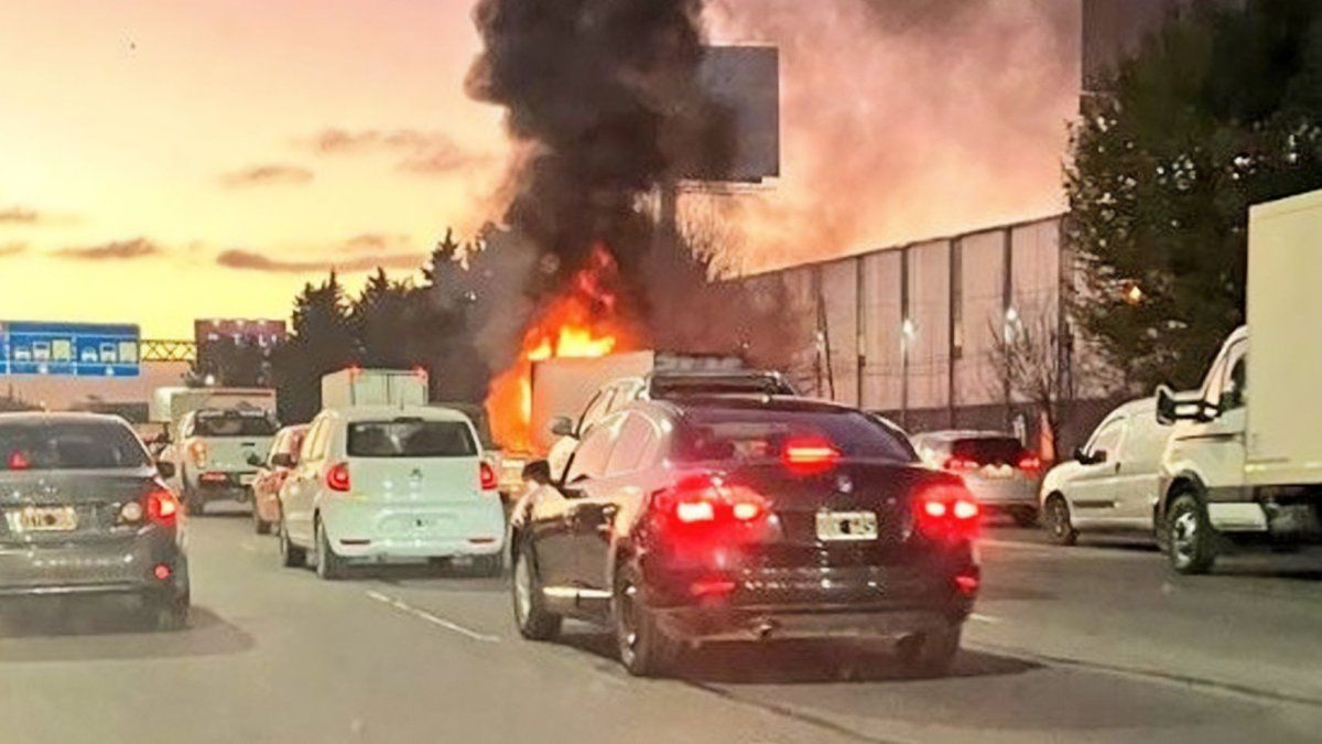 Un camión se incendio en Panamericana y desató la alarma de los conductores en mitad de la autopista. Las llamas comenzaron en la parte delantera del vehículo de gran porte y desataron una gran columna de humo en las primeras horas de este jueves.